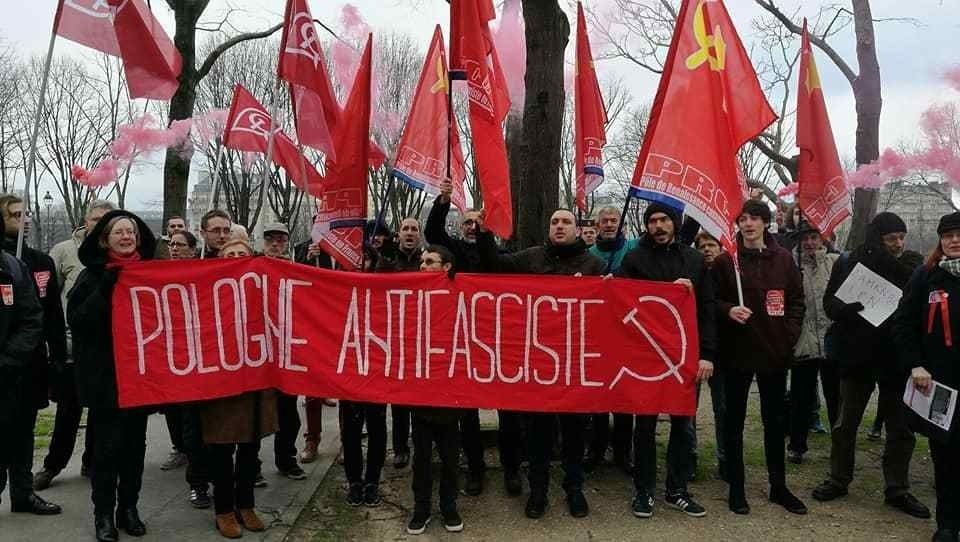 Le 27 janvier 2018, à l'initiative du PRCF, des JRCF, du CISC et de l'association des amis d'E Gierek, plus d'une centaine de manifestants se sont réunis devant l'ambassade de Pologne à Paris pour dénoncer le vent nauséabond de la fascisation qui souffle sur ce pays. En Pologne le régime d'extrême droite réprime le parti communiste, lance des procès politiques contre ses militants, interdit ses journaux et médias et tentent d'interdire le parti communiste. Ce vent mauvais est celui de la fascisation. Les jeunes des JRCF ont pris la parole pour appeler à la solidarité internationaliste, à la mobilisation antifasciste. Agissez avant qu'ils ne soient trop tard.