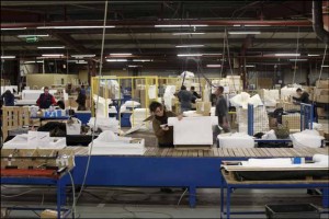 Le jour se lève sur le hangar en métal gondolé. Les voitures des 124 ouvriers se garent une à une sur le parking. Arlette se dirige vers la pointeuse. Quelques éclats de rire, des bises échangées et la cloche retentit. Un, deux, trois, quatre, dans une chorégraphie maîtrisée, l’ouvrière colle des blocs de mousse les uns aux autres et les empile sur des chariots. Ces gestes, mille fois répétés, lui ont coûté une opération à chaque poignet. Syndromes du canal carpien, opérations de l’épaule, tendinites multiples, surdités partielles, morceaux de doigts déchiquetés : en vingt-cinq ans, ils sont nombreux à avoir laissé leur santé dans les rouages de la chaîne Parisot. « Que voulez-vous qu’on fasse ? interroge Sophie (1), le dos tellement abîmé qu’elle peine parfois à se lever. Quand on a quatre enfants, on est déjà bien content d’avoir du travail. »